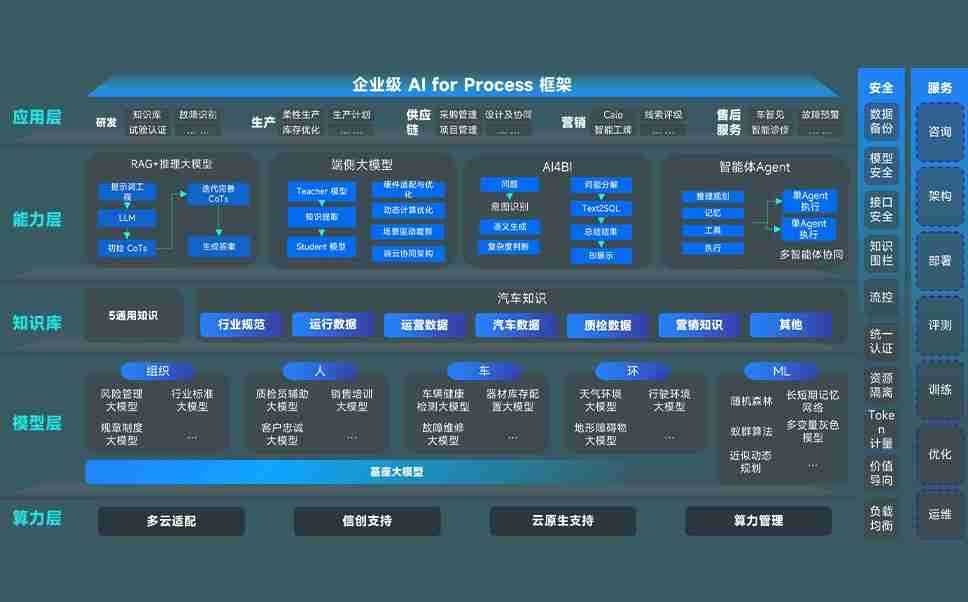 PG问学智车解决方案是一套基于AI技术的汽车行业智能化系统,,,覆盖从底层算力到顶层AI应用的全栈方案。。。方案由算力层、、、模型层和应用层组成:算力层,,,,方案支持多种一体机配置,,,具备云端灵活部署、、、、多云适配以及动态优化计算资源的能力;模型层,,,,PG问学平台版提供了企业级AI应用一站式构建与管理平台,,支持基于后训练强化技术的汽车企业专属模型的训练、、评测和运营;应用层,,,,PG问学DeepSeek版提供包括超级员工、、、、智能招采、、、智能营销、、、、智能客服、、AI for BI等一系列解决方案,,可助力汽车行业实现数字化转型,,,让管理更智能、、、、响应更敏捷。。。